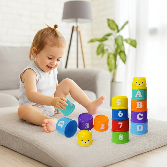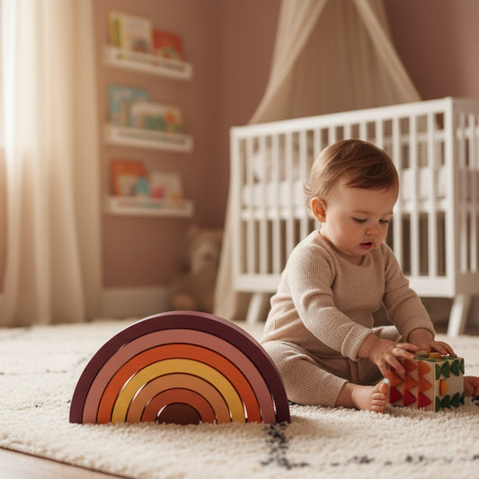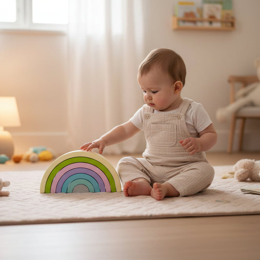 Vers 6 mois, quand bébé commence à s'asseoir et à manipuler les objets avec plus de précision, les cubes d'éveil, les jouets à empiler ou les tableaux d'activités deviennent parfaits pour développer sa coordination œil-main et sa motricité fine.